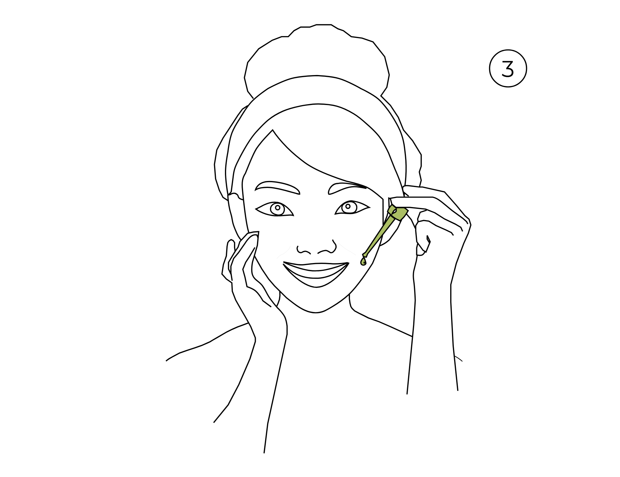 Applique quelques gouttes de sérum sur le bout de tes doigts. Répartis doucement le sérum sur ton visage en le tapotant ou en le massant légèrement jusqu'à ce qu'il soit complètement absorbé. Veille à te concentrer particulièrement sur les zones présentant des problèmes de peau spécifiques.